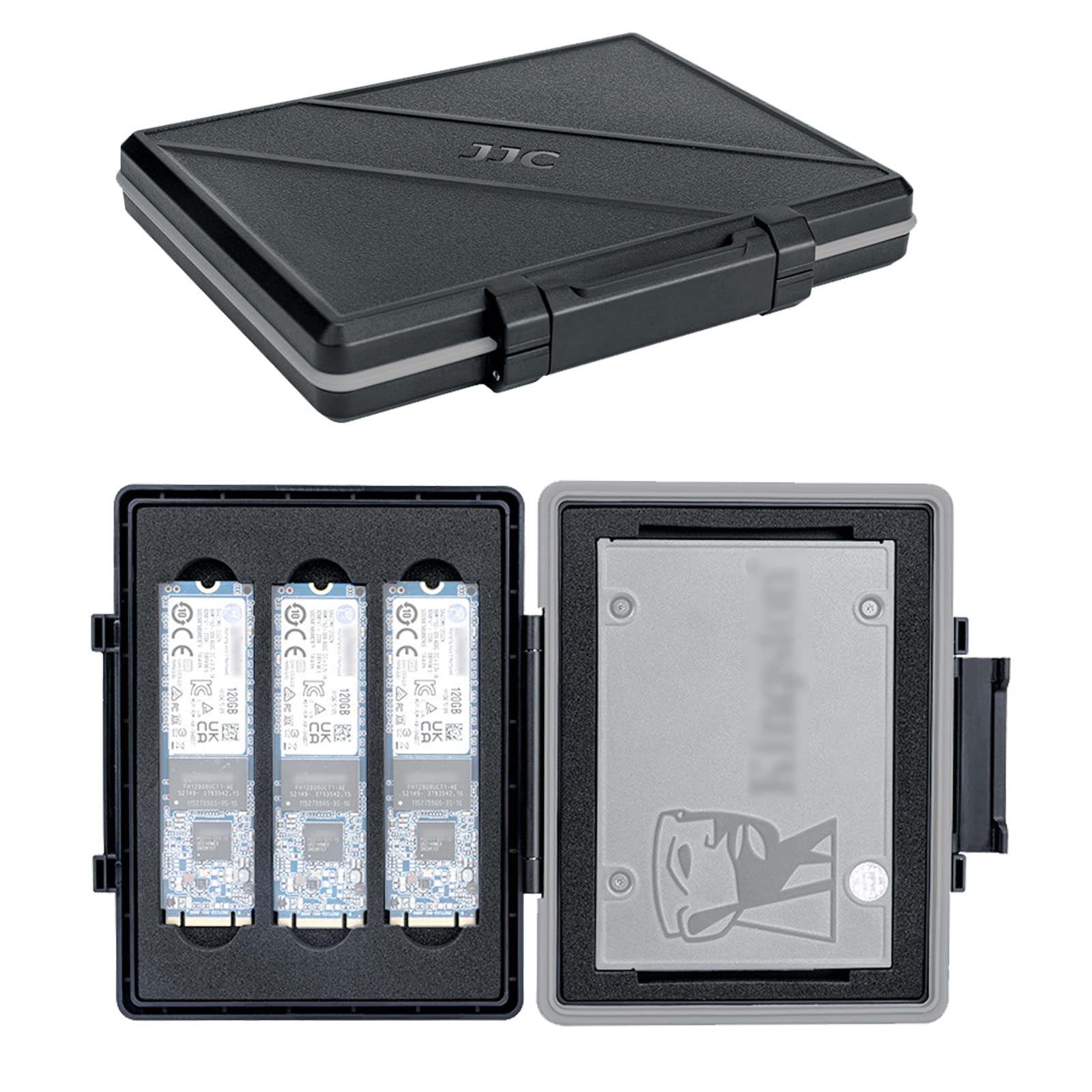 JJC 4スロット 収納ケース 1 枚 2.5インチ SSD + 3 枚 M.2 NVME 2280 / 2260 / 2240 SSD 収納可能 耐衝撃 防塵 防湿 ハードディスク 保管ケース