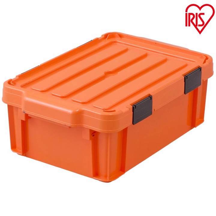フタのフレーム(内側)部分には、車のヘッドライトの部品(止水材として)に使用されている接着剤=ホットメルト材(スチレン系エラストマー)を採用し密閉性を高めました♪荷台に乗せる際やスタッキングする際にバンドが止めやすいようにフタの四隅に溝の加工が施されています!アイリスオーヤマ社のボックスコンテナシリーズとの積み重ねが可能です。