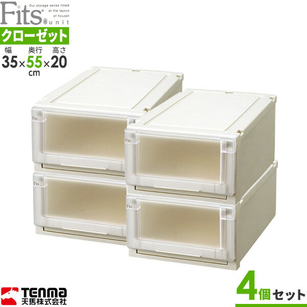 収納ケース Fits フィッツユニットケース 幅35×奥行55×高さ20cm カプチーノ 4個セット 3520 | プラスチック 引き出し 収納ボックス 衣装ケース クローゼット収納 積み重ね 衣類ボックス