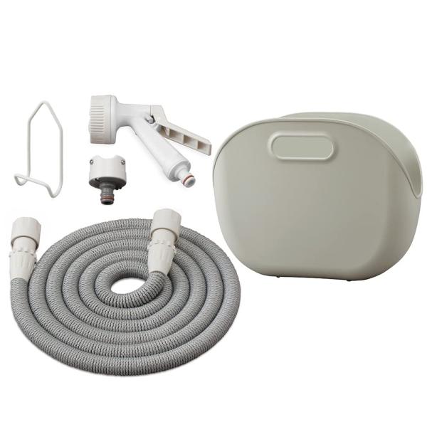 | IRISOHYAMA アイリスオーヤマ アイリスオーヤマ 伸縮ホース 最大7m 便利な収納ケース付 軽量コンパクト 多機能ノズル ライトグレー SHP-7