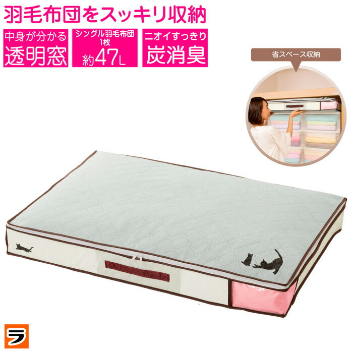【商品説明】 ネコのシルエットがワンポイント♪かさばる羽毛布団の収納にとっても便利♪ ・かさばる布団もコンパクトに収納できる布団収納ケース!上蓋と底部に消臭効果のある炭シート入り。