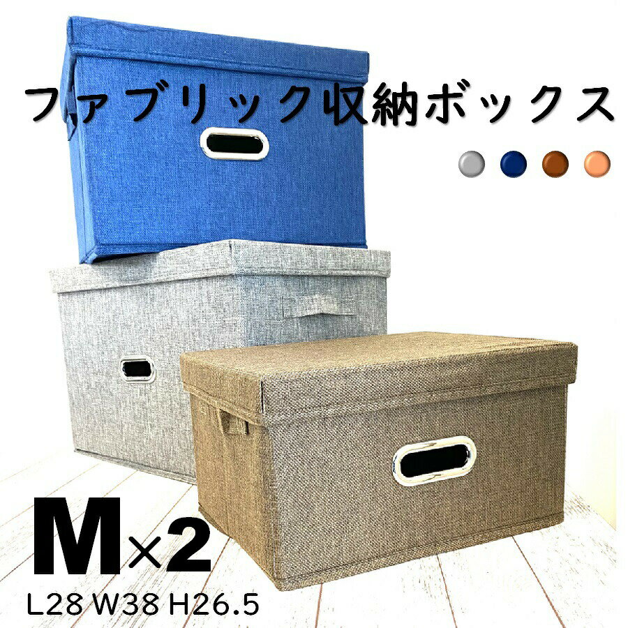 | 収納ボックス 2個セット Mサイズ 布 取っ手 おもちゃ シンプル 収納ケース ふた付き 蓋付き 整理 衣類 小物 おしゃれ スタッキング 頑丈